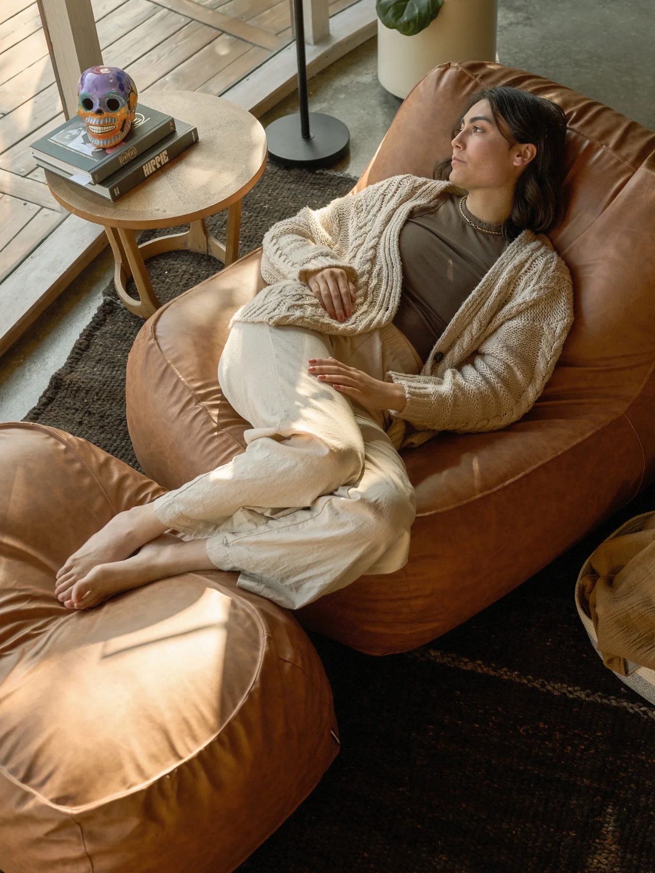 Dume Lounge Chair + Ottoman Vegan Leather - Saddle